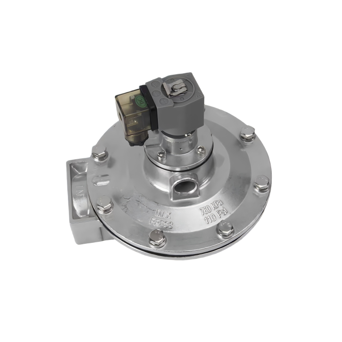 Η βαλβίδα διαφράγματος ηλεκτρομαγνητικού παλμού αποτελείται από δύο θαλάμους αερίων. Όταν συνδέεται ο πεπιεσμένος αέρας, η ροή αέρα εισέρχεται στον πίσω θάλαμο αερίου μέσω του στομίου.