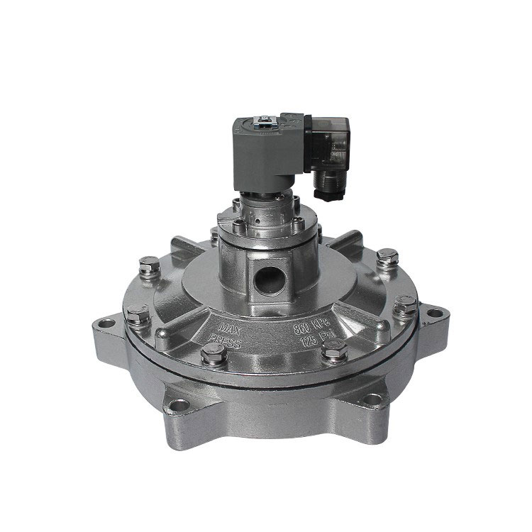 Το χαρακτηριστικό του είναι ότι οι σωλήνες εισαγωγής και εξαγωγής αέρα της βαλβίδας ορθής γωνίας βρίσκονται σε γωνία 90°. Το σώμα και το καπό της βαλβίδας είναι χυτά με υλικό από κράμα αλουμινίου. Μετά την επιφανειακή επεξεργασία, παρουσιάζουν εξαιρετική αντοχή στη διάβρωση. Το διάφραγμα και το παρέμβυσμα στεγανοποίησης παράγονται χρησιμοποιώντας μια βουλκανισμένη σύνθετη διαδικασία. Οι πρώτες ύλες για την ηλεκτρομαγνητική κεφαλή πιλότου αποτελούνται από μαγνητικά υλικά υψηλής απόδοσης και υλικά μαγνητικής θωράκισης από ανοξείδωτο χάλυβα. Τα κρίσιμα εξαρτήματα όπως ελατήρια και συνδετήρες είναι κατασκευασμένα από ανοξείδωτο χάλυβα. Μέθοδος σύνδεσης: Ο σωλήνας διανομής αέρα (δεξαμενή αέρα) και ο σωλήνας φυσήματος του συλλέκτη σκόνης εισάγονται στην είσοδο και την έξοδο της βαλβίδας αντίστοιχα, σφραγισμένα με παξιμάδια συμπίεσης και στα δύο άκρα.