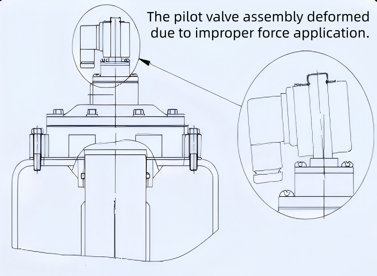 Μετά την εγκατάσταση, οι εργασίες συγκόλλησης σε δεξαμενές αέρα, συνδεδεμένες φλάντζες ή σωλήνες εμφύσησης απαγορεύονται για την αποφυγή πιτσιλίσματος συγκόλλησης ή ζημιάς σε υψηλή θερμοκρασία στα διαφράγματα. Χειριστείτε με προσοχή κατά τη μεταφορά ή την εγκατάσταση για να αποφύγετε ζημιά από κρούση στο συγκρότημα πιλότου της ηλεκτρομαγνητικής βαλβίδας, η οποία θα μπορούσε να παραμορφώσει το χιτώνιο της μπομπίνας, προκαλώντας εμπλοκή του κινούμενου στελέχους και αποτρέποντας τη λειτουργία της βαλβίδας.